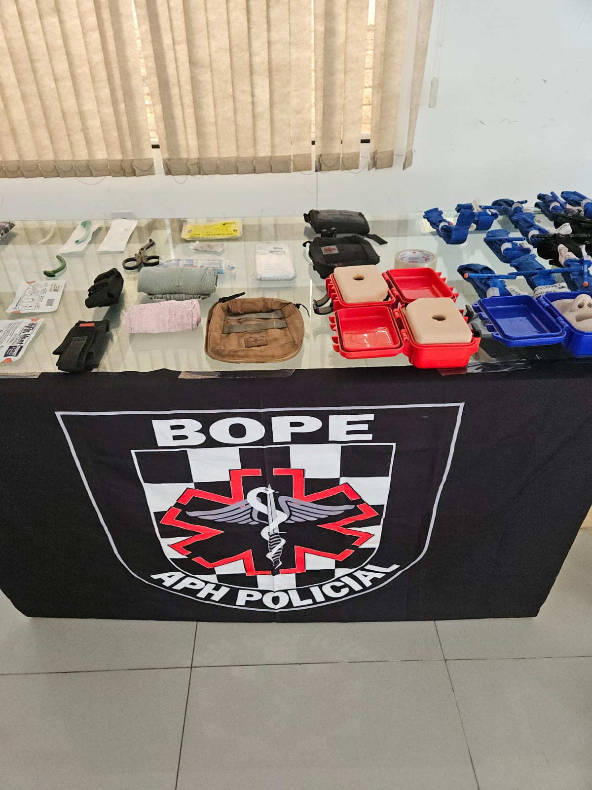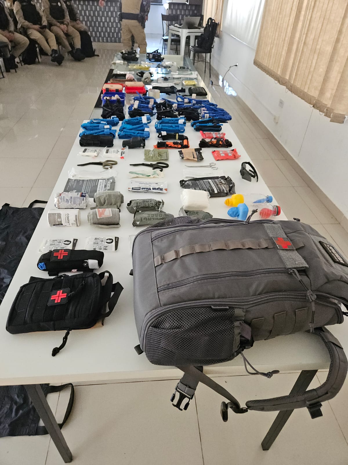 Nesta segunda-feira (5), policiais militares do 10º BPM, juntamente com o Sargento Francisclei do CHOQUE de Londrina, iniciaram as instruções de Atendimento Pré-Hospitalar Policial (APH) para os alunos do Curso de Sargentos do Núcleo Londrina.