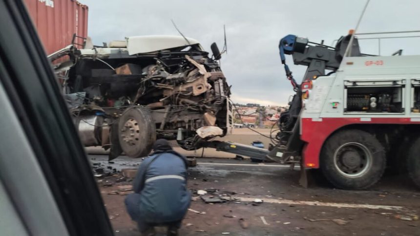 De acordo com as informações repassadas por testemunhas, um caminhão com placas de Jandaia do Sul foi atingido na traseira por um caminhão contêiner. Com o impacto, a cabine do veículo ficou bastante danificada.