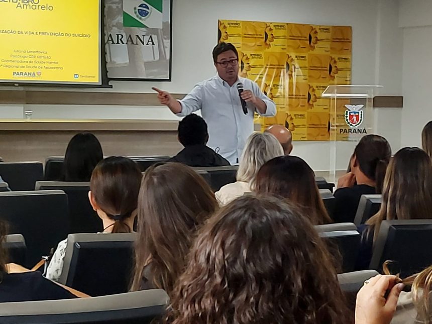 A 16ª Regional de Saúde de Apucarana lançou nesta segunda-feira, dia 22, a campanha “Setembro Amarelo”, que prevê uma atuação mais vigorosa como forma de prevenção ao suicídio. O evento no Auditório Araucárias, reuniu professores, educadores, diretores de escolas, Profissionais de saúde mental, incluindo psicólogos, psiquiatras, enfermeiros e agentes comunitários.