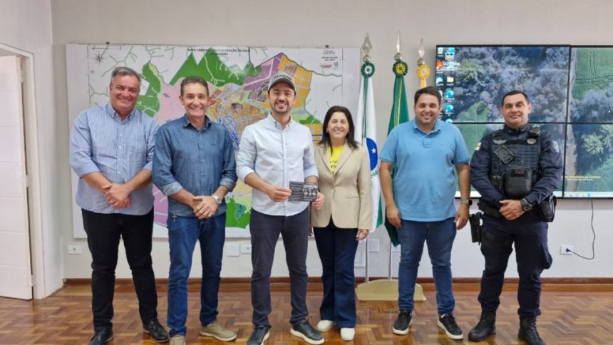 O prefeito de Apucarana, Rodolfo Mota, recebeu nesta sexta-feira (26/09), no gabinete municipal, a prefeita de Cambira, Ana Lúcia de Oliveira. Acompanhada do vice-prefeito, Antônio Ricardo Coelho de Farias, conhecido como Ricardinho da Cafeeira. A gestora do município vizinho convidou oficialmente a população de Apucarana para prestigiar a Feira de Exposição de Cambira (Expocam 2025), que acontece dias 17, 18 e 19 de outubro.