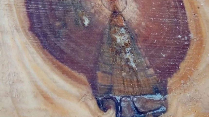 Durante o corte de árvores de pinus em uma propriedade da cidade, trabalhadores se depararam com uma formação natural no interior de um tronco que, segundo eles, lembra a imagem de Nossa Senhora Aparecida, padroeira do Brasil.