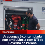 Arapongas foi um dos municípios contemplados com uma ambulância equipada com Unidade de Terapia Intensiva (UTI) móvel, entregue em cerimônia conduzida pelo governador Carlos Massa Ratinho Junior na quarta-feira, 03. No total, são 150 veículos que compõe a nova frota que vai ampliar a capacidade de resposta dos municípios e modernizar os serviços pré-hospitalares. A aquisição se deu com investimento de R$ 82,5 milhões da Secretaria de Estado da Saúde (Sesa). O Prefeito Rafael Cita foi representado pelo secretário municipal de Saúde, Carlos Eduardo Arruda. “Trata-se de mais um reforço que chega para agregar ainda mais a nossa rede de atendimento para poder ofertar um serviço cada dia melhor para a população”, frisa o secretário.