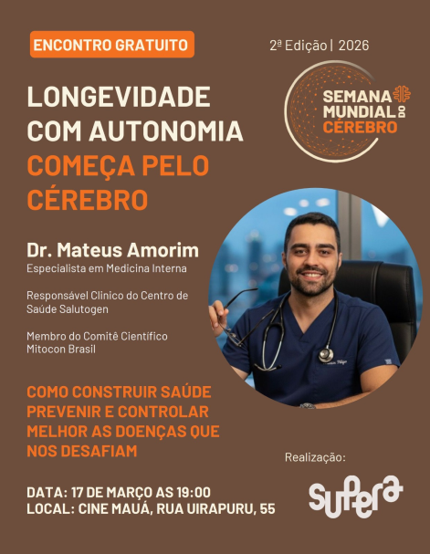 Arapongas terá uma palestra no dia 17 de março sobre como construir saúde, prevenir e controlar melhor as doenças. Ministrada pelo doutor Mateus Amorim, especialista em longevidade e prevenção de doenças, o evento será às 19h, no Cine Mauá, durante a 2ª edição local da Semana Mundial do Cérebro. A Prefeitura de Arapongas, por meio da Secretaria de Saúde, é parceira do evento, que é uma realização da Supera Ginástica para o Cérebro – Arapongas.