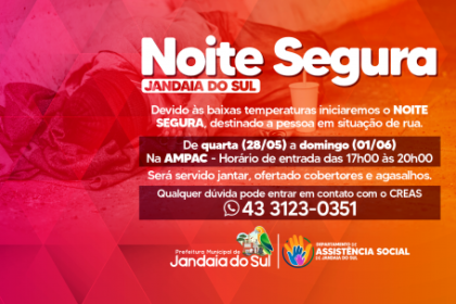 Jandaia do Sul inicia programa “Noite Segura” para acolher pessoas em situação de rua durante frente fria