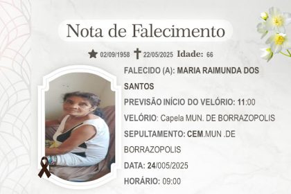 Faleceu em Borrazópolis, neste dia 23 de maio de 2025, a senhora…