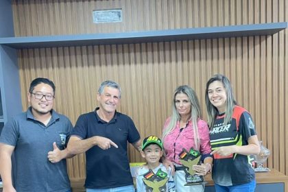 Prefeito de Marilândia do Sul recebe no gabinete a visita do piloto mirim de motocross