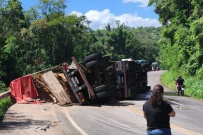 Um caminhão que transportava madeira tombou na manhã desta quinta-feira (6 de…