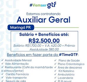 A empresa GTF, com sede em Maringá, está contratando Auxiliar Geral e…