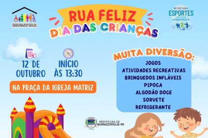 Convite para o “Rua Feliz” especial do Dia das Crianças em Borrazópolis