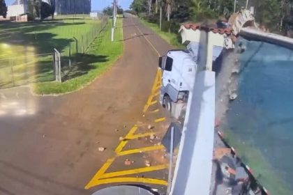 Caminhão derruba portal histórico da Colônia Esperança em Arapongas