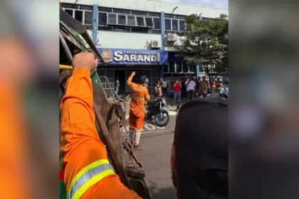 Coletores de lixo de Sarandi protestam na frente da prefeitura e prefeito diz que pode romper contrato