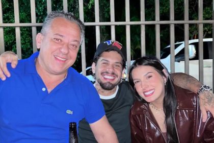 Ana Castela e Zé Felipe visitam lanchonete em Cambé e posam ao lado do prefeito Conrado
