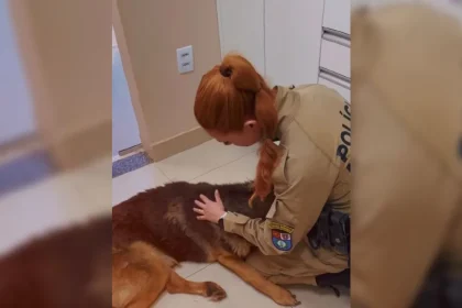 A despedida do cão policial Athos, de 13 anos, submetido à eutanásia…