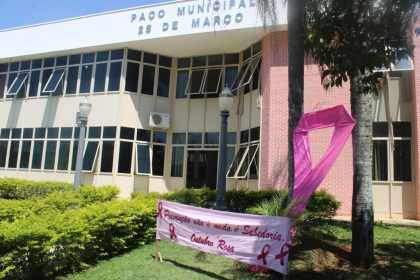 Prefeitura instala laço gigante de conscientização e lança projeto de apoio às mulheres com câncer