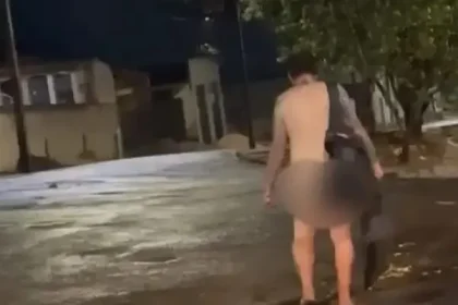 Homem é flagrado nu caminhando por avenida após chuva no Paraná
