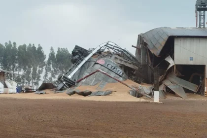Um silo de grãos da cooperativa C.Vale desabou na tarde desta terça-feira,…