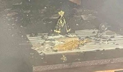 IMAGEM DE NOSSA SENHORA APARECIDA FICA INTACTA APÓS INCÊNDIO DESTRUIR CASA
