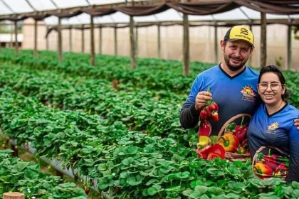 Casal inova com plantio de morango suspenso e alcança pico de 100 quilos por dia