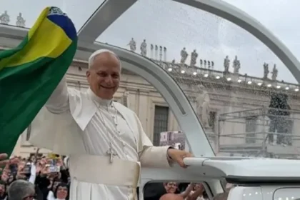 Padre da região entrega bandeira do Brasil ao Papa em Roma: