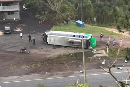 Um grave acidente de trânsito envolvendo um micro-ônibus e duas carretas deixou…