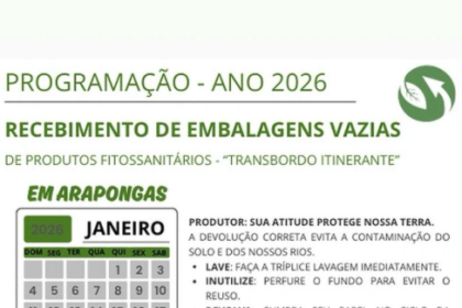 Arapongas recebe embalagens vazias de produtos fitossanitários nesta quinta e sexta-feira