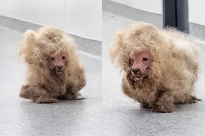 Com quase 1 kg de pelo, cadela resgatada comemora ao passar por tosa