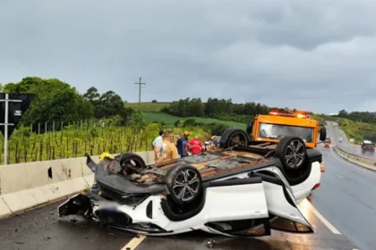 Médica de Maringá capota carro na BR-376, em Jandaia do Sul, e é resgatada de helicóptero
