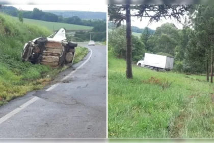 Vítimas conseguem sair de carro capotado e são atropeladas por caminhão no PR