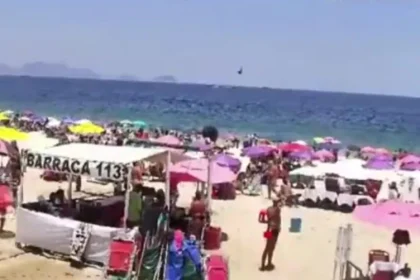 Avião de propaganda cai no mar da praia de Copacabana; veja o momento da queda