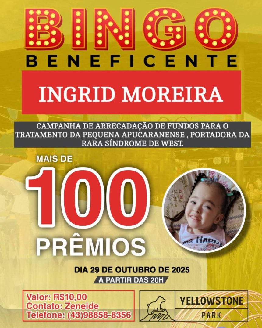 Para ajudar nos custos do tratamento, amigos e familiares estão organizando um bingo beneficente, que será realizado no próximo dia 29 de outubro (quarta-feira), às 20h, no Yellowstone Park, localizado no centro de Apucarana.