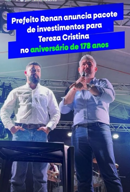Prefeito Renan anuncia pacote de investimentos para Tereza Cristina no aniversário de 178 anos
