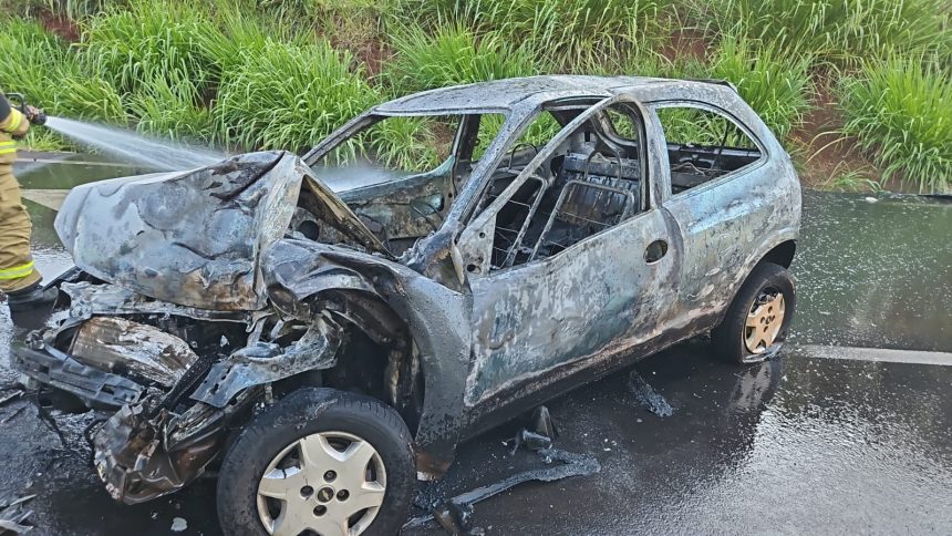 Veículo pega fogo após grave acidente na BR-376 entre Califórnia e Apucarana