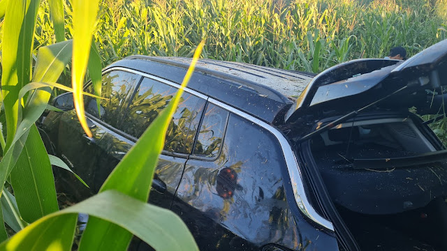 Jeep Compass invadiu roça de milho e capotou na PR-466 em Borrazópolis