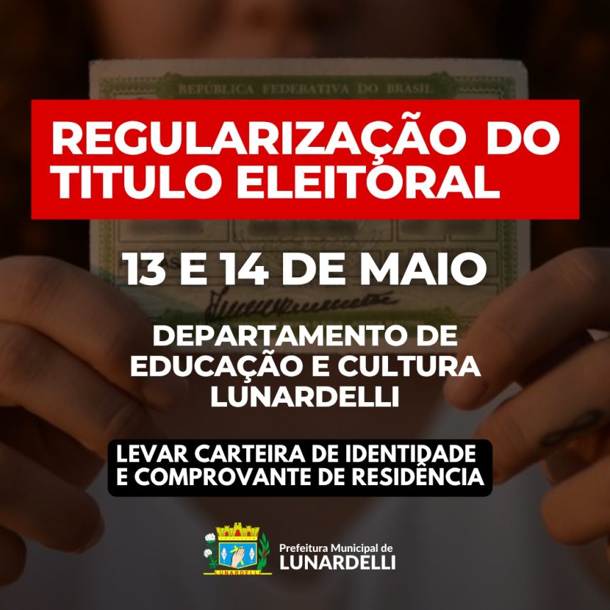 Nos dias 13 e 14 de maio, a equipe do Fórum Eleitoral de São João do Ivaí estará presente no município de Lunardelli para oferecer serviços de regularização do título…
