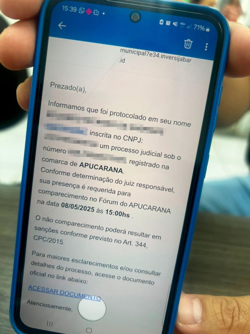 Prefeitura de Apucarana alerta população sobre golpe do falso processo judicial