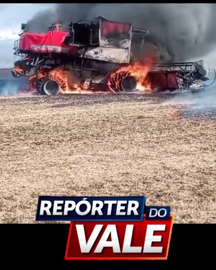 Colheitadeira é destruída pelo fogo na zona rural de Faxinal