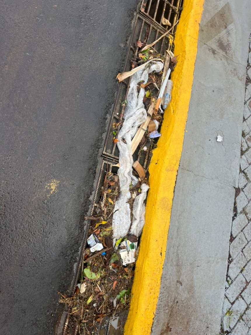 Chuva forte provoca alagamento em frente à UPA; descarte irregular de lixo é apontado como principal causa