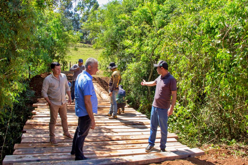 Prefeitura de Faxinal e Mauá da Serra recuperam ponte de madeira sobre o Rio das Antas