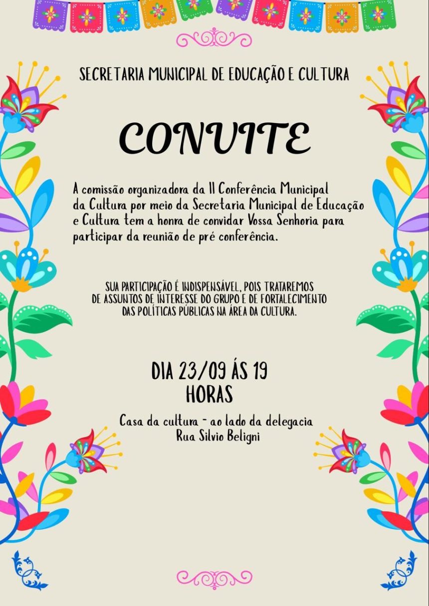 A secretaria municipal de Educação e Cultura de Marilândia do Sul, convida para a II pré-conferência Municipal da Cultura. Durante o evento serão discutidos assuntos de fortalecimento das políticas públicas…