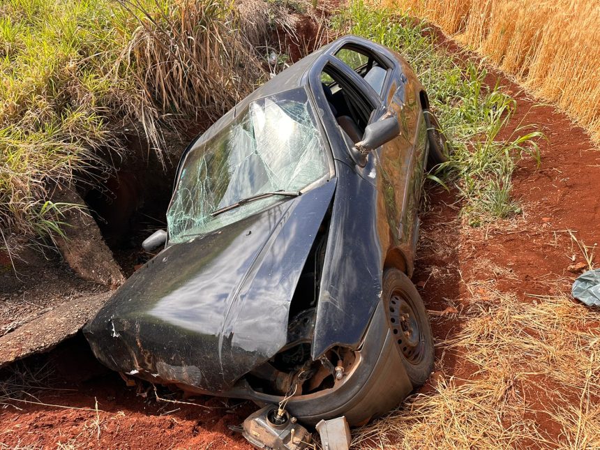 Motorista perde o controle e colide com barranco na rodovia entre Lunardelli e Pouso Alegre