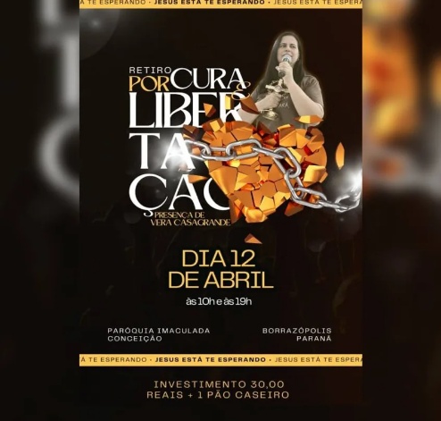 O encontro contará com a presença da missionária Vera Casagrande e promete um dia de oração, reflexão e fortalecimento espiritual. A programação terá início às 10 horas e seguirá ao longo do dia, com momentos voltados à busca por cura interior e renovação da fé.
