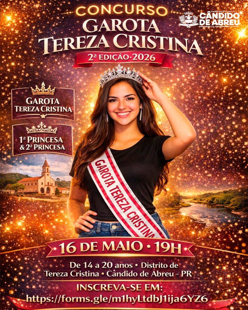 A Prefeitura de Cândido de Abreu anunciou a realização do Concurso Garota Tereza Cristina 2026, evento que promete destacar a beleza, a elegância e o talento das jovens do município. A iniciativa integra a programação local e busca valorizar a participação da juventude, incentivando a autoestima e o protagonismo feminino.
