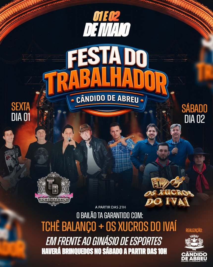 A Cândido de Abreu se prepara para comemorar o Dia do Trabalhador com uma grande festa nos dias 1º e 2 de maio, reunindo música, lazer e diversão para toda a população.