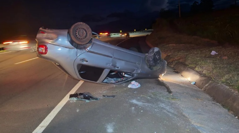 Um veículo Fiat Siena capotou na noite desta quinta-feira (12), na PR-445, no trecho entre Tamarana e Mauá da Serra.