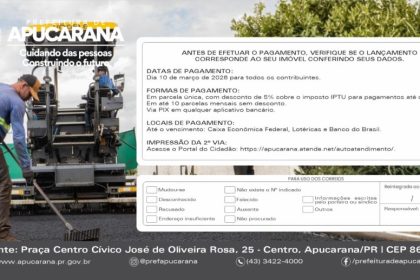 Prefeitura de Apucarana orienta contribuintes sobre prazo da terceira parcela do ISS e da Taxa da Vigilância Sanitária