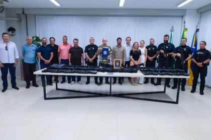 O deputado federal Sargento Fahur entregou, de forma simbólica, 29 armas para…