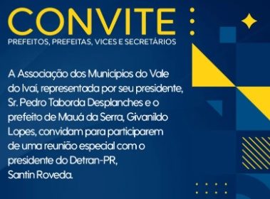 Prefeito Taborda convida gestores para reunião da AMUVI em Mauá da Serra com presidente do Detran-PR