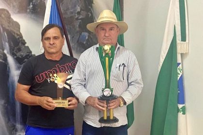 Técnico apresenta troféus de campeão do futsal ao poder público de Faxinal