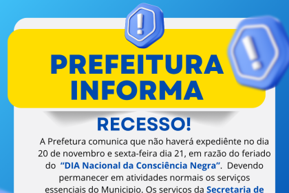Prefeitura de Faxinal decreta ponto facultativo na sexta-feira (21) após o feriado da Consciência Negra
