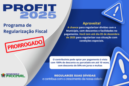 PROFIT – Programa de Regularização Fiscal tem prazo prorrogado até 5 de dezembro em Faxinal